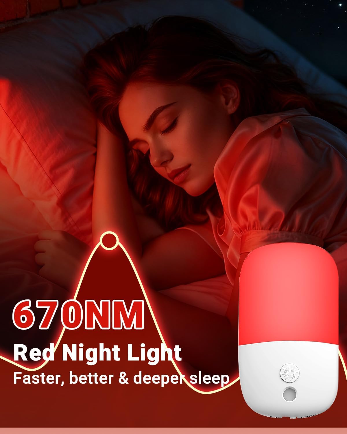 • 670nm Red Light Night Light: Free from blue light interference, it simulates a sunset ambiance to promote relaxation and sleep. Offers gentle nighttime illumination for bedrooms, nurseries, hallways, and stairs, making it a thoughtful holiday gift.