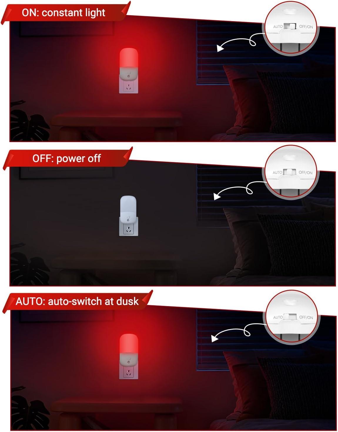 670nm Red Night Lights with Retractable Plug [2 Pack] – 0.5W Red Light Night Light with Dusk to Dawn Sensor – Auto On/Off LED