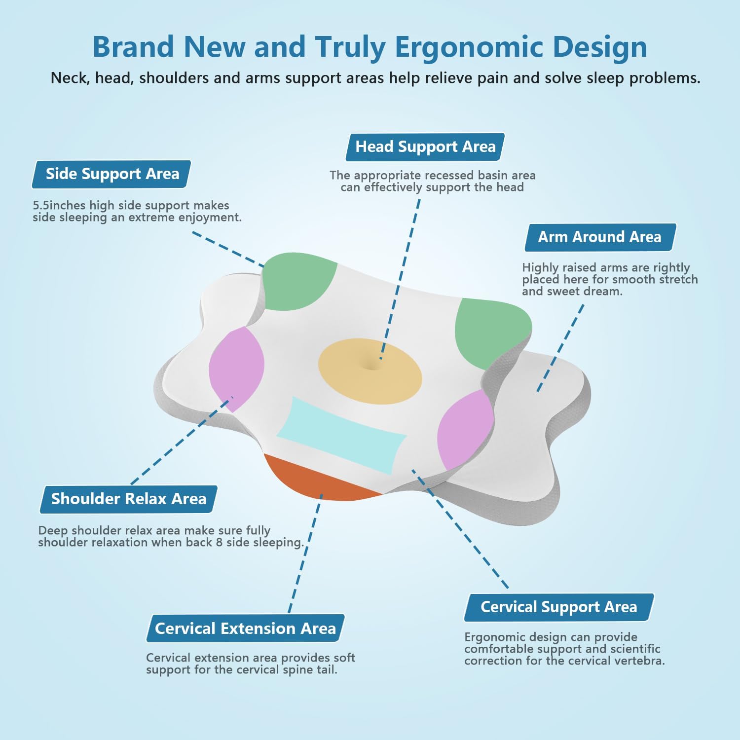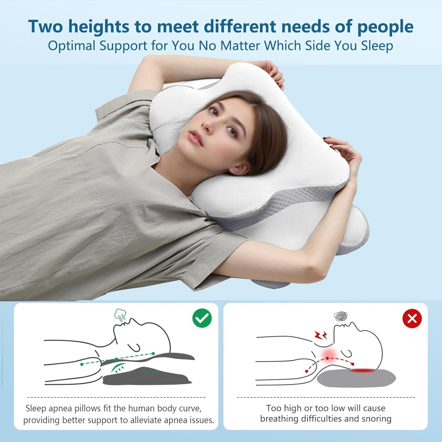 - PREMIUM BED PILLOW FOR SLEEPING – ERGO DESIGNED FOR SLEEP APNEA, NECK PAIN RELIEF, AND ULTIMATE COMFORT: Engineered to support open airways and reduce snoring, our ergo pillow cradles your head & neck in perfect alignment for exceptional comfort. The contoured design fills shoulder gaps for side sleepers, targeting pressure points to deliver lasting neck and shoulder pain relief. Wake up breathing easier, free from pain, and truly refreshed.
