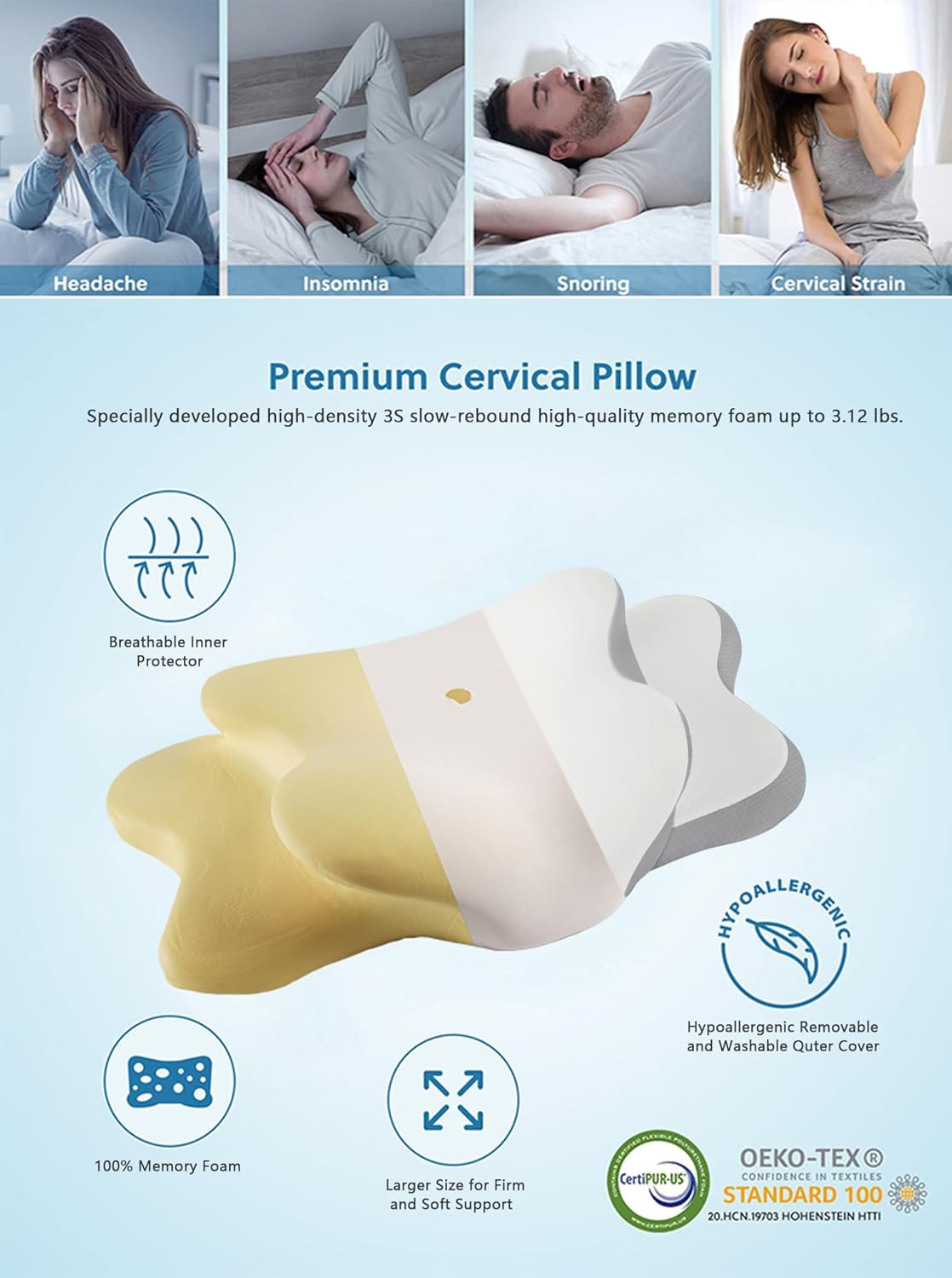 - PRESSURE-RELIEVING SUPPORT THAT NEVER SAGS: Made from high-resiliency, slow-rebound memory foam, this cervical pillow offers firm yet luxuriously adaptive support. It molds to your curves without collapsing, providing the structured, orthopedic-grade foundation needed for chronic issues, while cradling you in cloud-like comfort night after night.