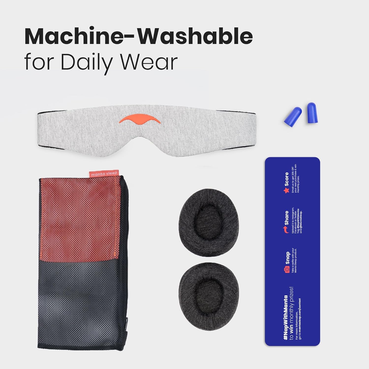 • 100% Machine Washable for Easy Care — Designed with your busy life in mind, your Manta is a breeze to clean. Simply use cold water, place the mask (eye cups and all) in the included carrying pouch, which doubles as a handy laundry mesh net, and then lay it flat to air dry. Wake up every day to a refreshingly pristine sleep experience.