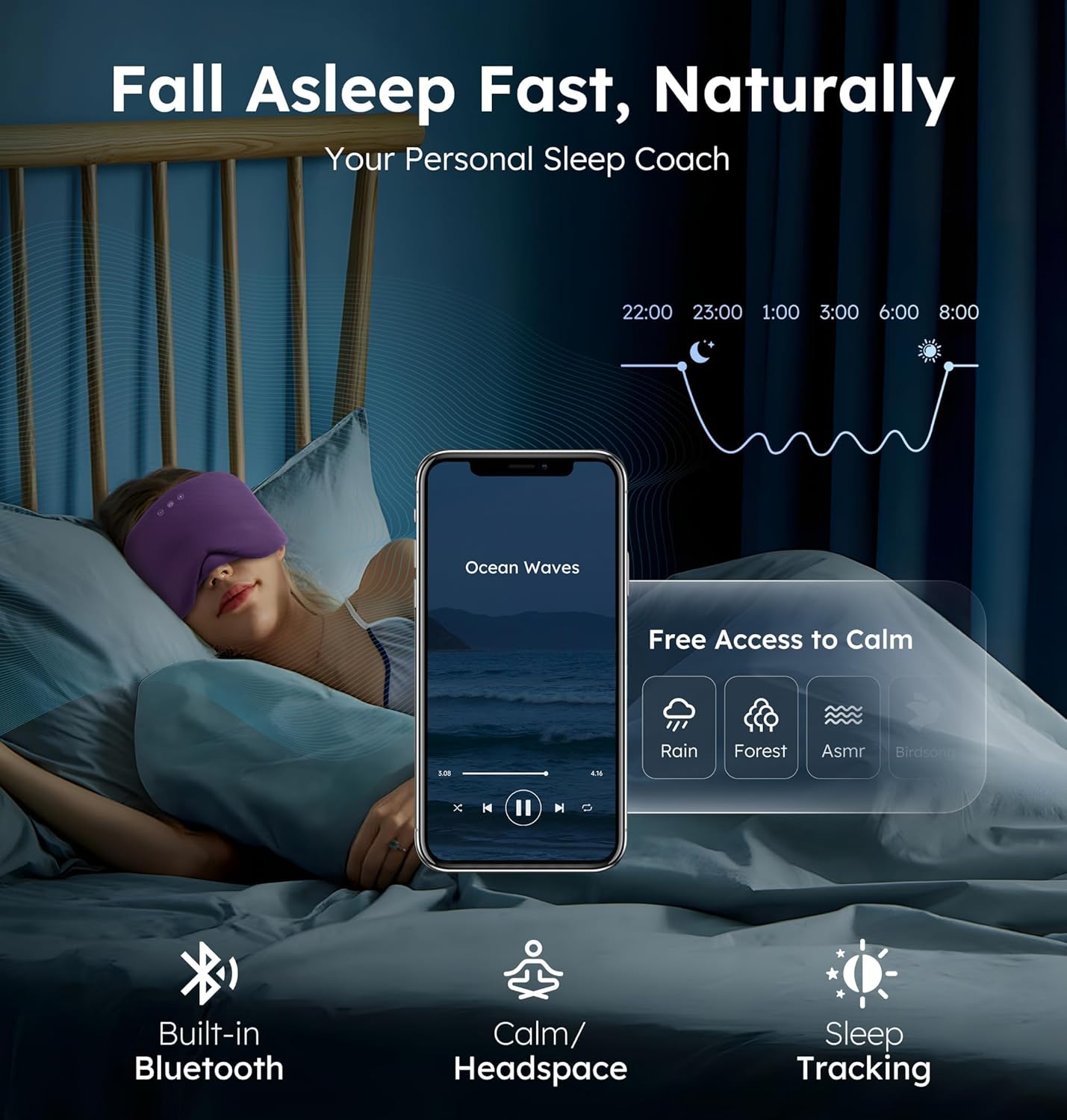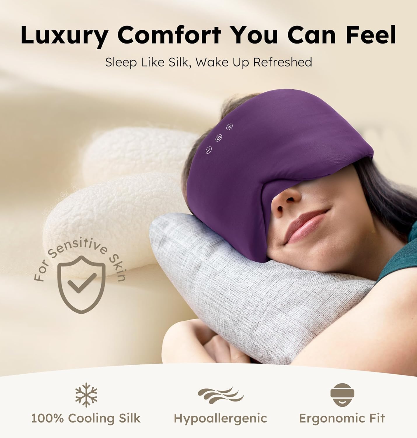 Luxury Bluetooth 5.4 Sleep Mask for Adults (purple) – Ice Fiber Cooling ; HD Sound, 100% Light Blocking Adjustable Eye Cover for Travel ; Side Sleepers – Soft Sleep Headphones with 10H Playtime