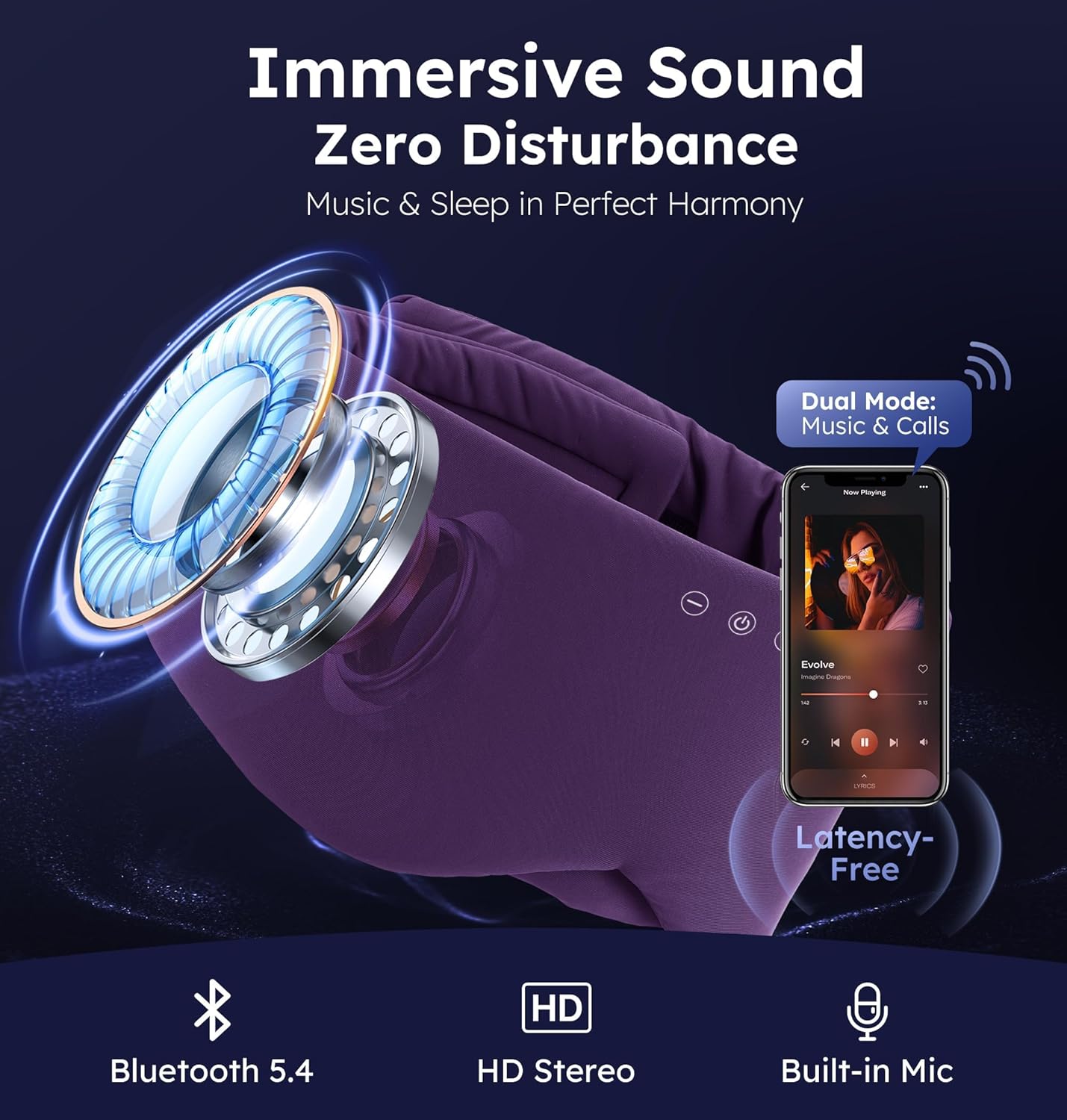 • 【Bluetooth 5.4 & Immersive HD Sound】Next-gen Bluetooth 5.4 offers 66ft stable connection & ultra-low latency for music. Dual HD Speakers deliver cinema-quality audio—no ear pressure from bulky headphones.