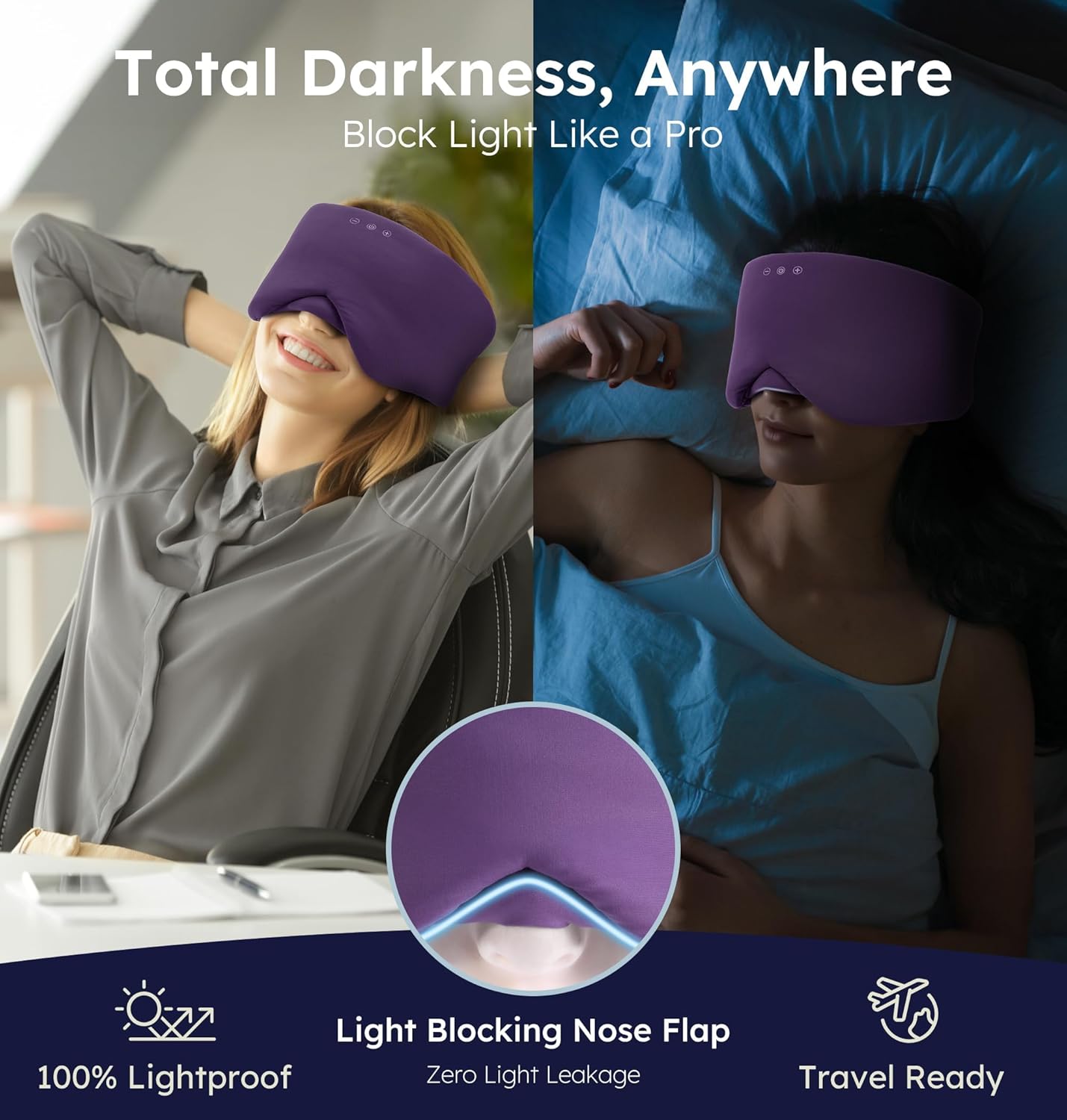 • 【Zero Light Leakage, All-Night Comfort】3D Contoured Design blocks 100% light (even on sunny flights), while Adjustable Nose Pad & Elastic Strap prevent face marks. Approved & side-sleeper certified for restless travelers.